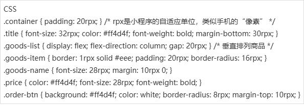 :图片链接先用“占位图”(比如自己上传一张到微信云存储,或者用公共图床),避免显示“×”;按钮的bindtap是“点击事件”,函数名(如goOrder)要和JS里的函数一致。